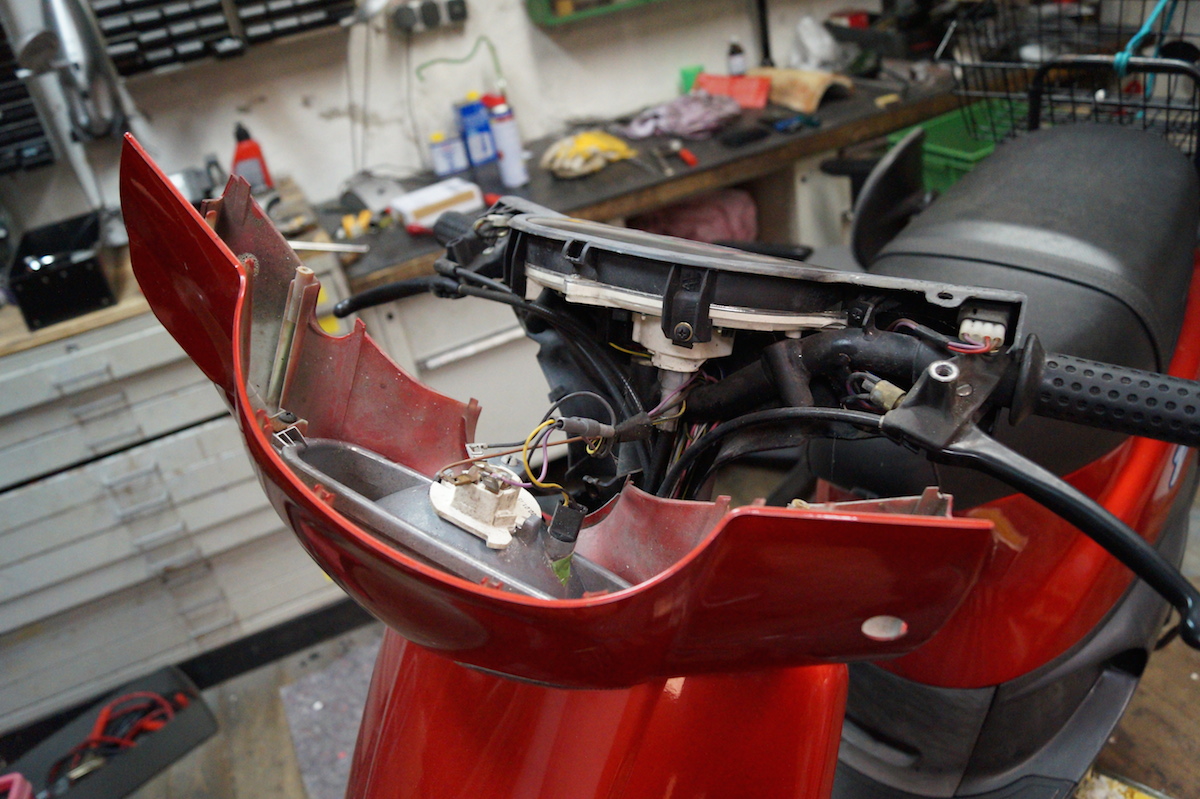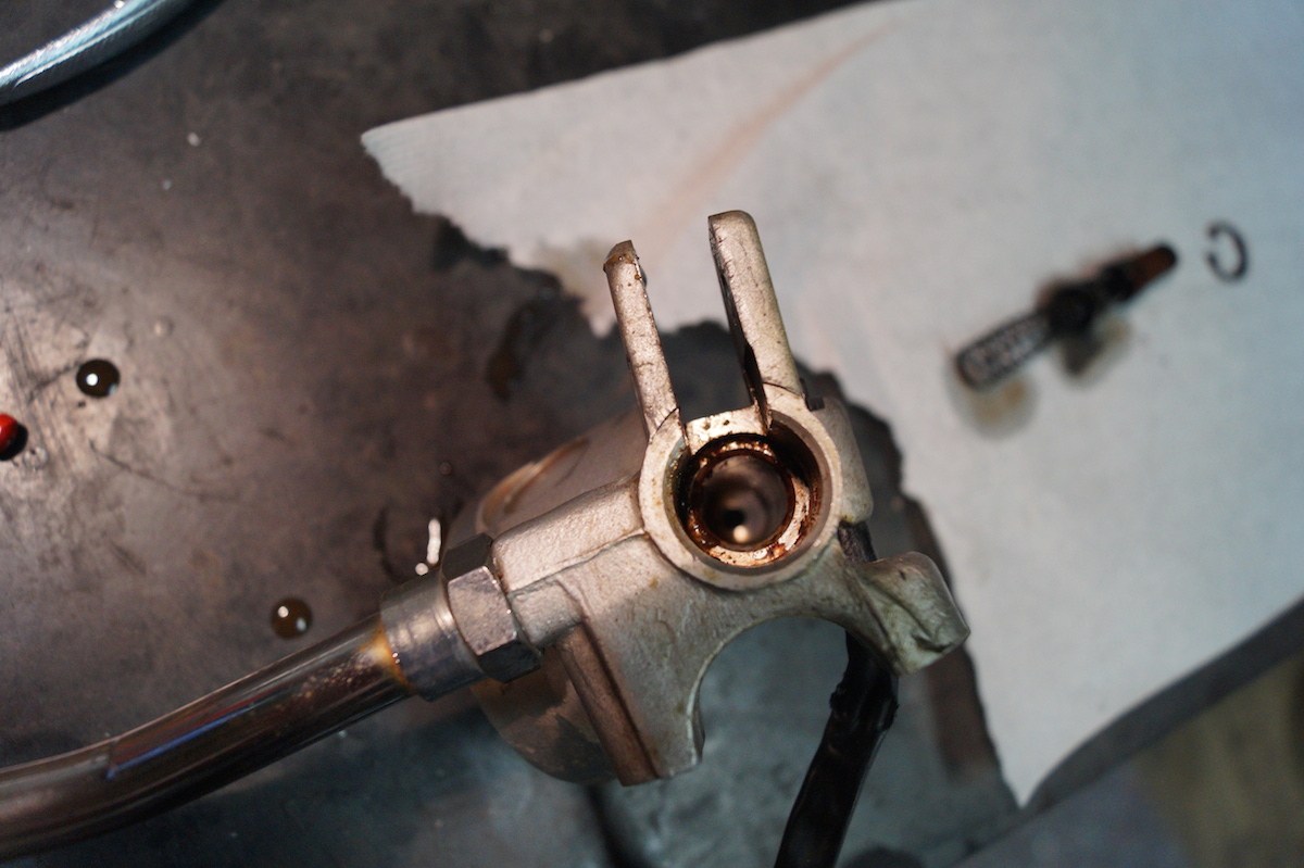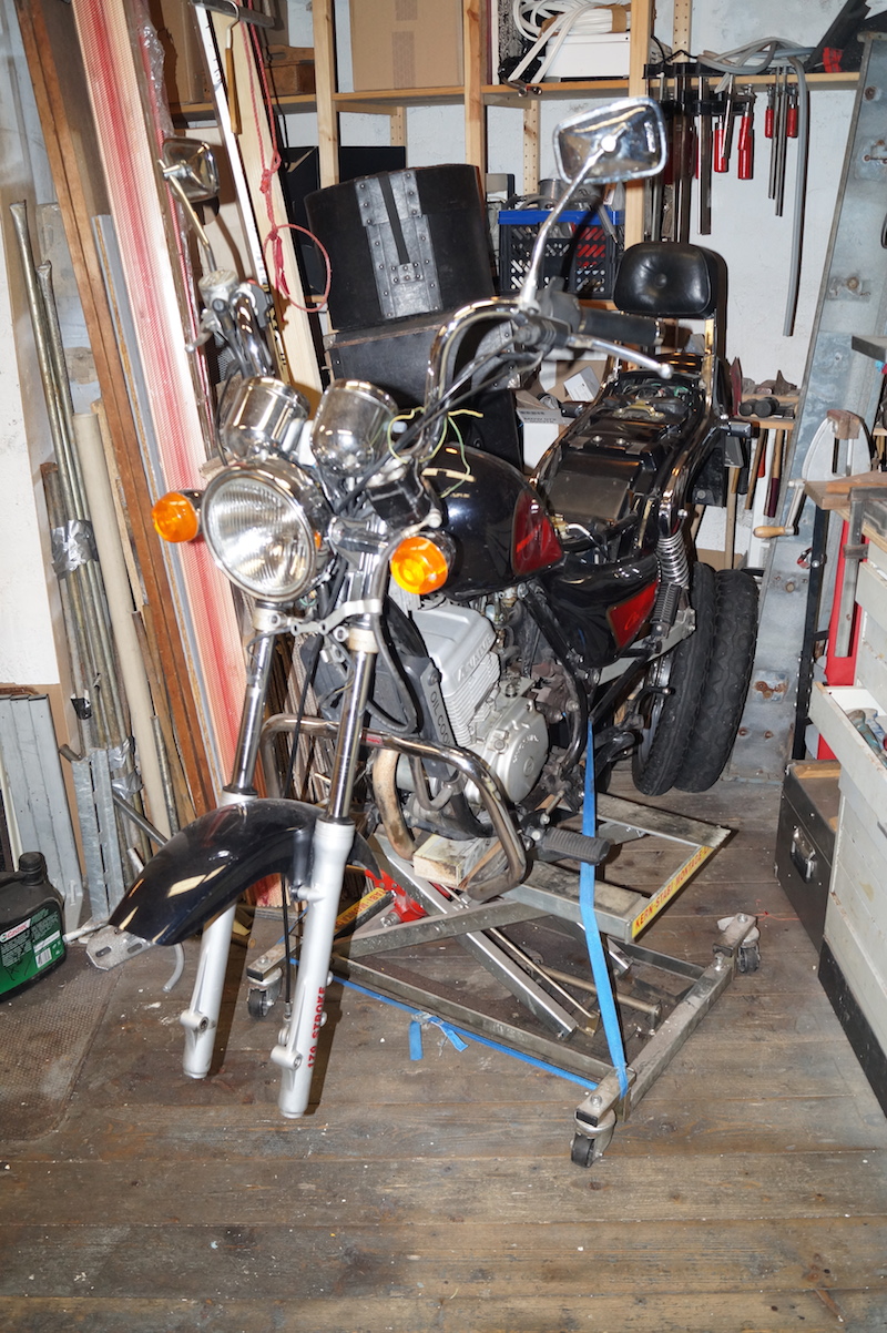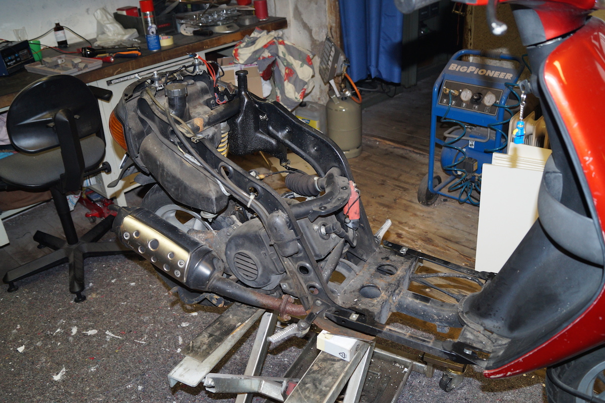 Diagnose lt. TÜV (durchgefallen) Benzinschlauch undicht (o.k.) Gabel krumm (Schmarrn, ist nur verdreht) Kette und Ritzel hinüber (stimmt), Reifen (o.k. Erstausstattung, lt. DOT Nummer aus 1996 und wir schreiben das Jahr 2016 - damit sollte man nicht mehr rumfahren), vordere Bremse - Bremsbeläge. Es sollte schlimmer kommen...