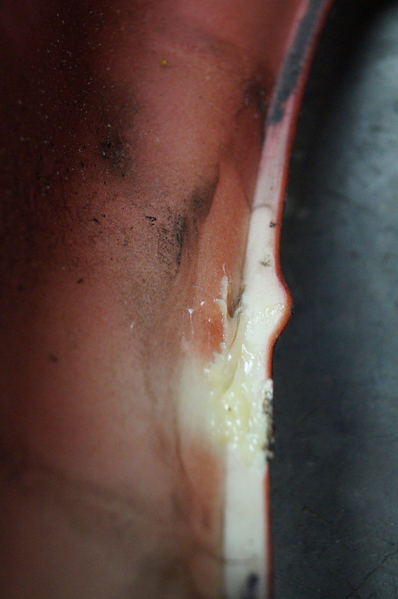 - Risse in der Verkleidung mit 2K Kleber stabilisiert