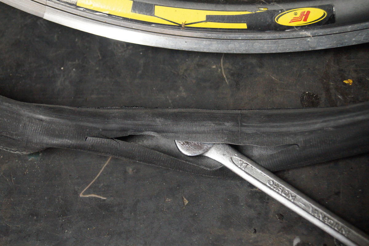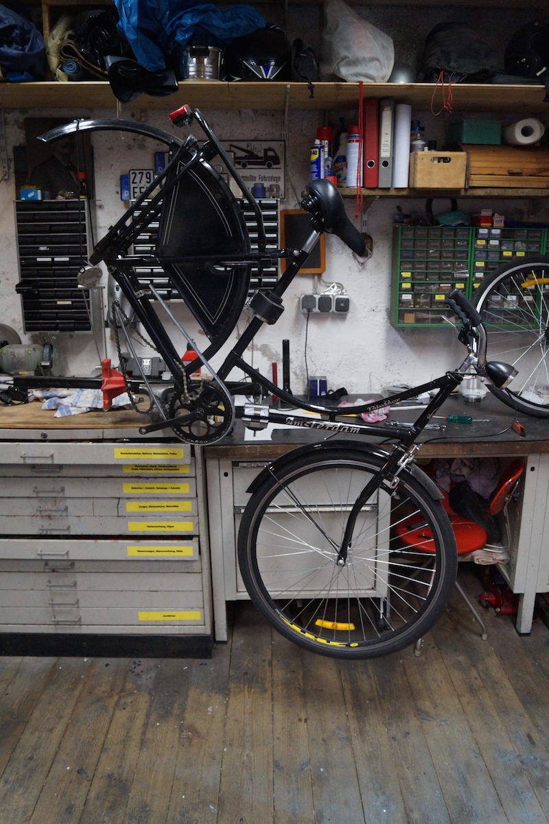 Diagnose nach dem ersten reinschieben: Verstaubt, platte Reifen Hinterrad dreht sich extrem schwer (nichts für Mama mit Kind hintendrauf). Licht vorne geht nicht, hinten auch nicht - nicht einmal ein Kabel dran aber es wird schlimmer...