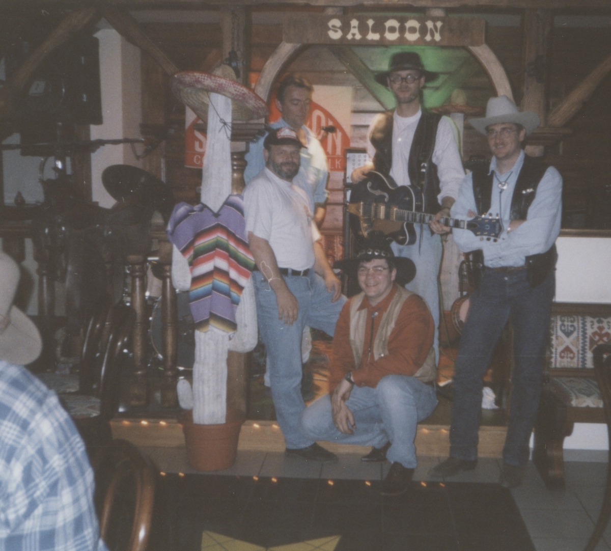 so viele schöne aber auch skurille Erlebnisse, leider viel zu wenig Fotos von den oft "berauschenden" Festen mit den Texas Riders in Ungarn und Südtirol wo wir auch "Stars" wie Emmilou Harris und die Bellamy Brothers kennenlernten, von den Gigs in der Crazy Alm oder Augustiner Keller mit Paul Würges, Allotria in der Türkenstraße mit Fats Hagen, den lustigen Floßfahrten und Festen mit Ricky und den Balladeers, tolle Erlebnisse im Bayrischen Hof mit den Walkers, endlose Fahrten zu den Jobs mit Higway 45, abgedrehte Gigs mit Gerd Michl und Bavaria Blue, Heilig Abend Grillfeste mit Ronny & Munich Gamblers, Faschingsfeste mit den Jetzendorfer Hinterhofmusikanten, lustige Auftritte mit Tutti Frutti, Straßenmusik mit den Smart Coon Pickers und viele, viele andere Bands mit schönen Erinnerungen.